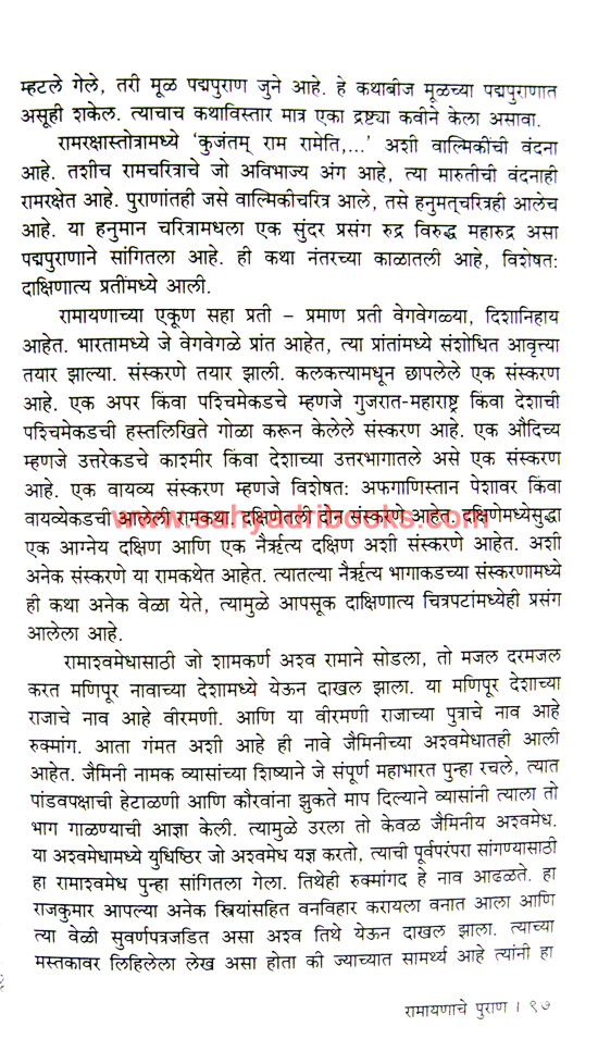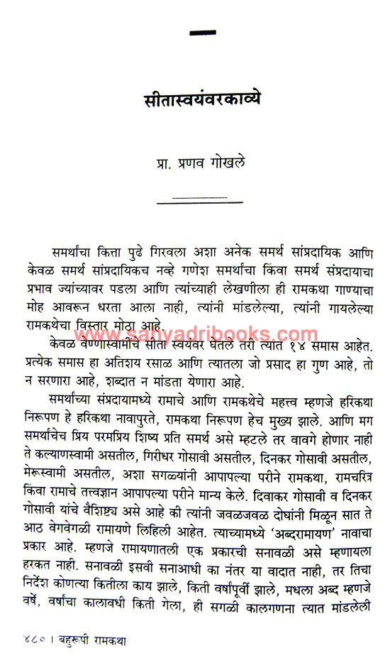 In various regions of India and in many large and small countries across the Asian continent, numerous versions of the Ramayana story have manifested themselves through paintings, sculptures, and literature. In the book Bahurupi Ramkatha, Dr. Aruna Dhere has for the first time, provided a comprehensive introduction to the multifaceted nature of the Ramayana narrative in Marathi.