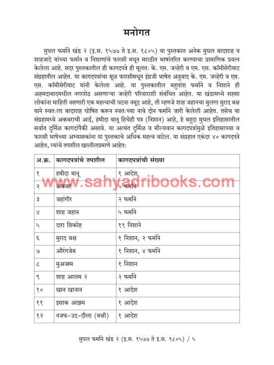 Mughal Farmane Khand 2 – मुघल फर्माने खंड २ (इ.स. १५७७ ते इ.स. १८०५)
