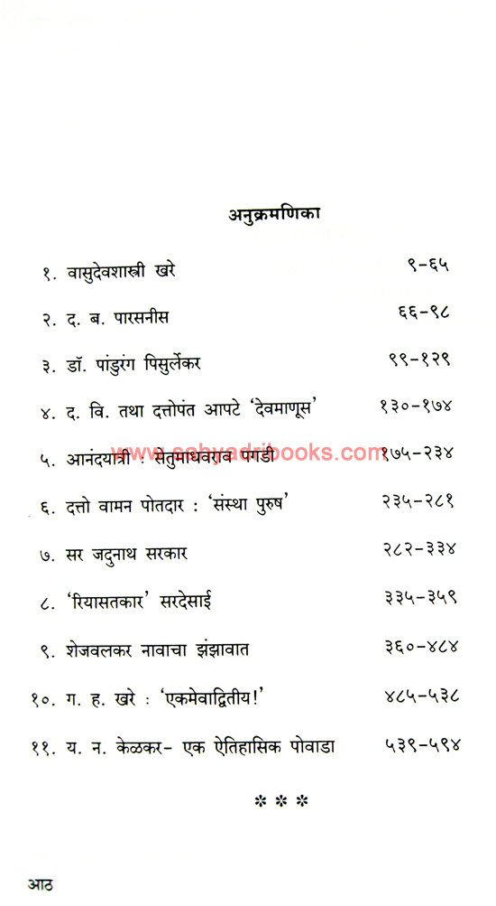 The title RushiTarpan means worship of sages – this book has created a personal vision of the scholars of Marathi history who have seen the soul of history through the penance of their research. This includes eleven historical sages like Vasudevshastri Khare, G. H. Khare, Dr. Pandurang Pisurlekar, D.V. Apte, Setumadhavrao Pagdi, D. V. Potdar, Sir Jadunath Sarkar, Riyasatkar Govind S. Sardesai, Trimbak S. Shejwalkar, Y.N. Kelkar. Along with their work, their personal joys and sorrows, their courage, their sacrifice, are discussed. The book RushiTarpan is a tribute by the author Prof. S.S. Puranik to the historical researchers who have become like sages themselves through the intense penance of our history.