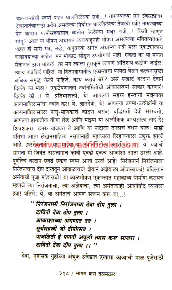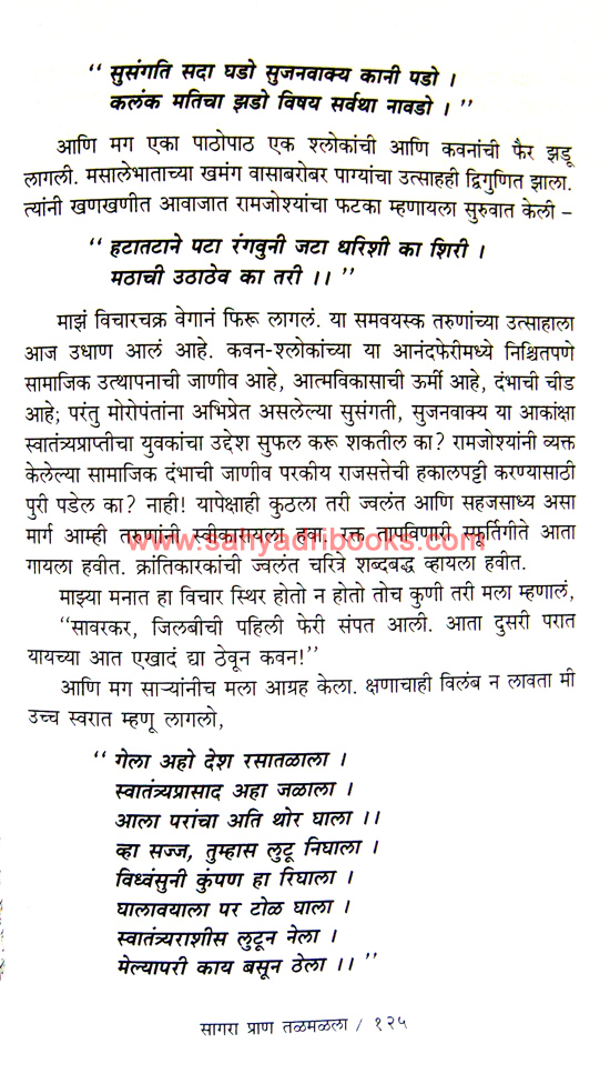 Freedom fighter Vinayak Damodar Savarkar. A representative of the era dominated by British rule. At the young age of just 14 or 15, he took an oath to “fight until death” and stood up for independence. Amidst the storm of struggle, revenge, blood, tears, suffering, and pain, Savarkar remained unwavering like a lighthouse. Unfortunately, in the post-independence era, his philosophy was not adopted by the rulers. The novel Sagara Pran Talamalala, based on the revolutionary period of SwatantryavVeer Vinayak Damodar Savarkar, has been written by author Ravindra Bhat.
