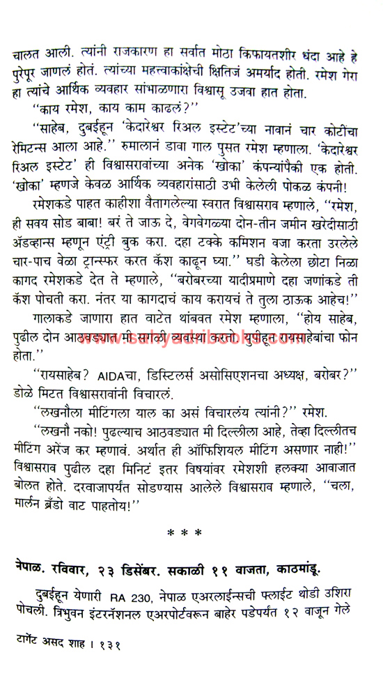 Against the backdrop of terrorism, anarchy, international tensions, and the economic politics of power, this is a thrilling storyline that unfolds across a vast canvas of time and space. Target Asadshah is a novel written by Vasant Limaye, about a young technologist who is suddenly drawn into this tumultuous journey purely out of curiosity.